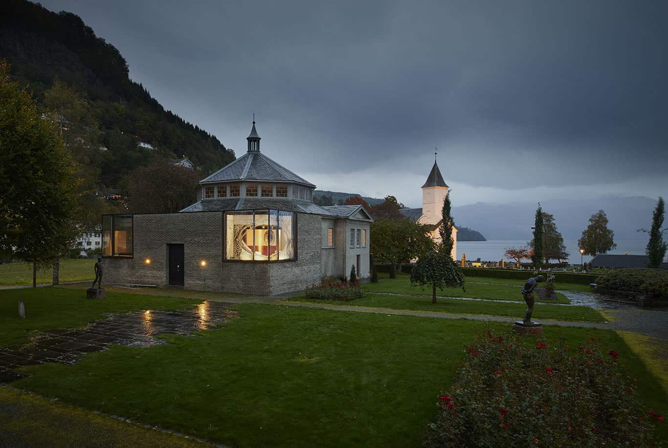 Det starta med ein samtale. Eller, nei, det starta før me møttes. Det starta med bygninga og mandatet Kabuso eingong fekk – å sjå nasjonalromantikken gjennom samtidas brilleglas. Mandatet er nedfelt i sjølve bygningskroppen – store glas vende mot fjorden, taket forma som eit lite ekko av fjellrekka, reine material.