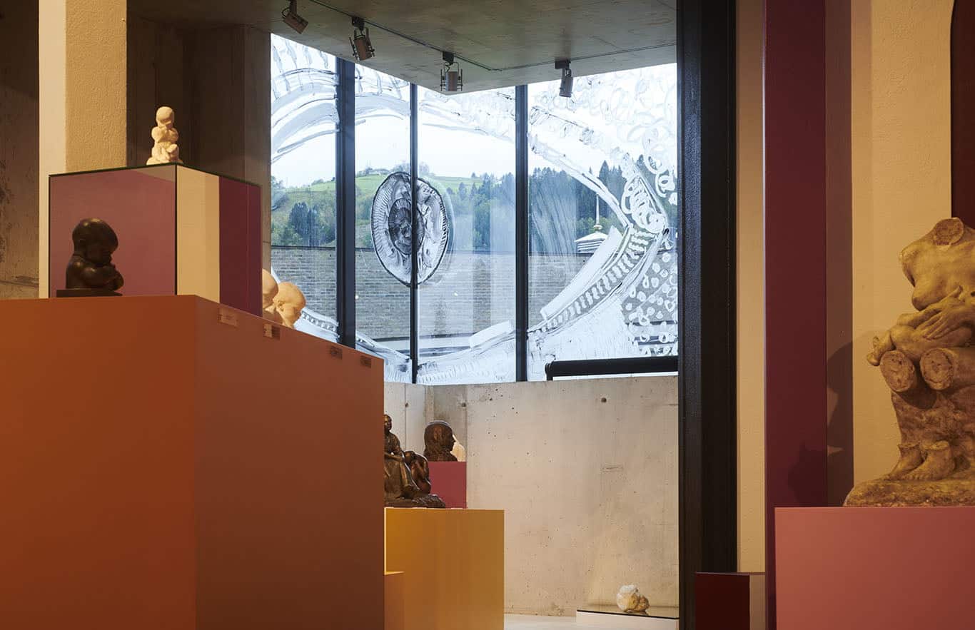 Kunstverka har vorte utforma og bygde på staden, både i utstillingssalen og på dei mange glasflatene.